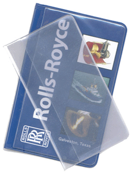 Clear vinyl insert sets have three leaves in the large size and four in the smaller version. Custom inserts, credit and business cards, safety data and technical charts and more can be kept safely in them.